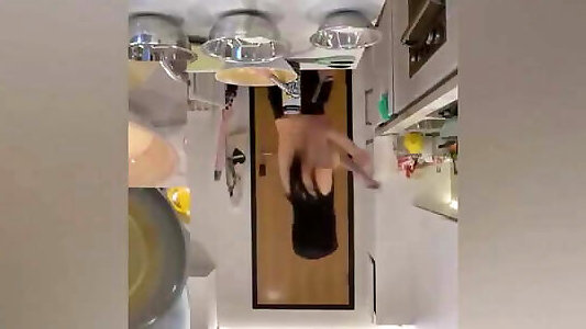 Fat Bap Ash-blonde Rubs herself in Kitchen