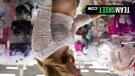 Emmi Evans disrobes down to her underpants in a delicate striptease