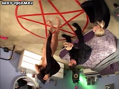 The vampire makes nubiles action naughty in girl-on-girl gang sex as she pummels their cunts with her dildo