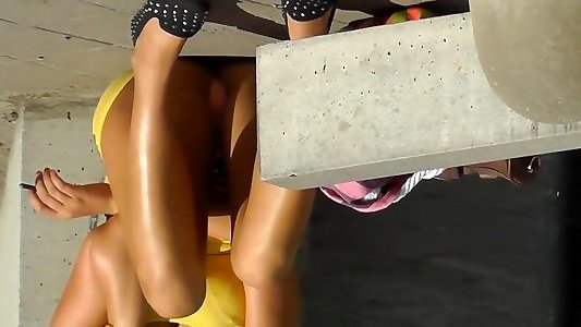 ultra-cute yng Girlfriends luxurious gams mini-skirt under table