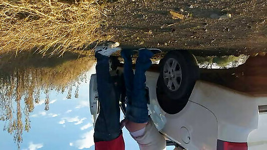 Wonderful nubile shows nude backside under short skirt right next to a engaged road