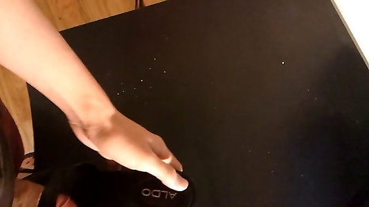 jism stream on ebony raquel diamond interracial high-heeled slippers glides