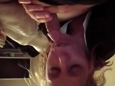 Blonde deep throats a yam-sized immense salami dry and swallows