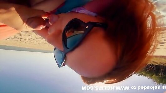 Cum on my Nose & Sun Glasses! Risky Inexperienced Ginger-haired Public Beach Prompt Blowage