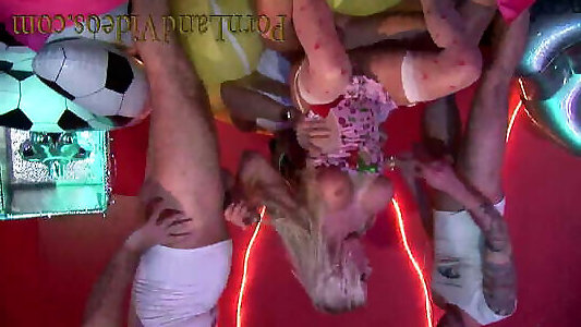 Platinum-blonde siren gets anally tucked in gang-fuck