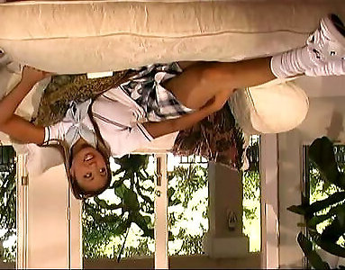 Slim Asian chick gets both of her holes fucked hard on the couch
