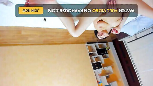 After eating her shaved pussy he made the brunette sweat immensely by roughly pummeling her