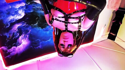 Desi in sexy latex outfit playing with balloons, dirty talking