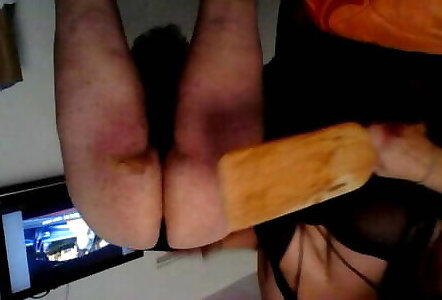 BDSM session. Mistress Nika whipped a slave. Spanking on the bare ass, spanking on the back.