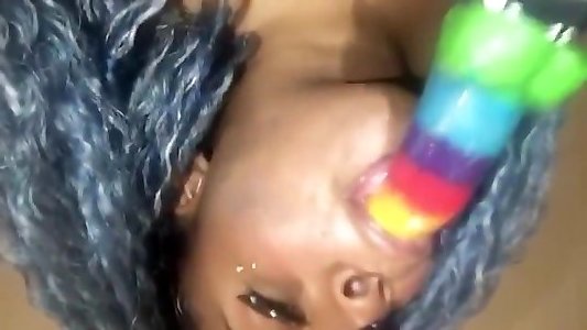 Excited BBW plays with her pussy and squirts while cumming dildo