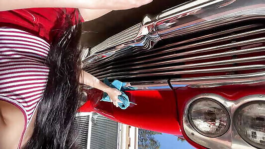 HORNY CAR CLEANER - High quality solo, cleaning the tv playboy foursome and playing with the hose - Susy Gala