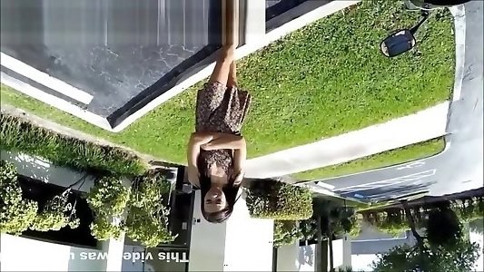 Pretty red-haired moves her hips and peels off sensually in public
