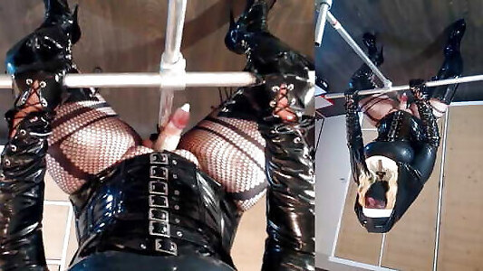 Lustful latex nun roughly fucks and cums twice in fleshlight