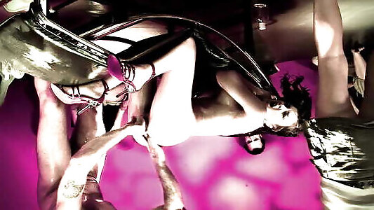 Beautiful Brunette Blowjob and Fucking with Two Huge Cocks in the Gloryhole!