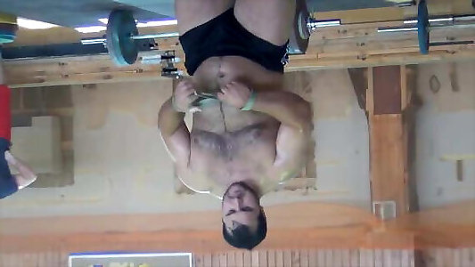 Sweaty bearded priest pulverizes bare