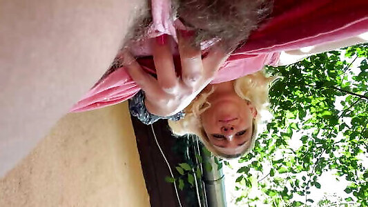 Sexy milf wife relaxes naked outdoors and has sunscreen rubbed into her beautiful naked body - big natural tits