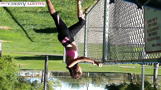 Fitness slut Anissa Kate fondles her clit while trainer bangs her culo slot