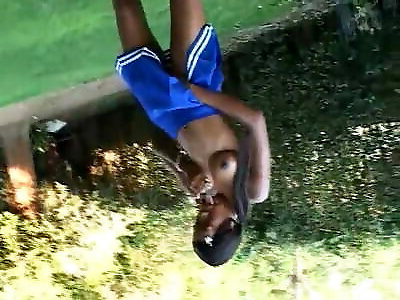 Dark-hued young cheerleader rides the enormous dark-hued firm cock