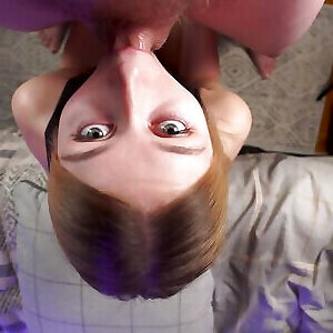 Phat facial explosion on the lips of a adorable brown-haired teen giving point of view oral