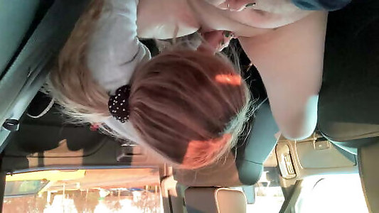Ultra-kinky red-haired Plumper mom is deep throating stiff trunk suck in the car