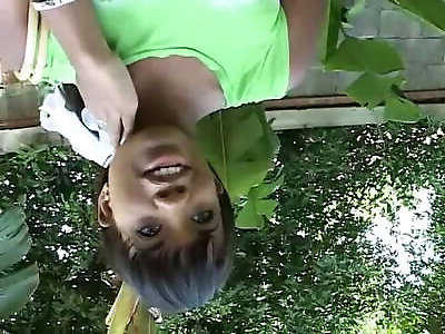 White man gets his gigantic penis fellated by black nymph outside then plows