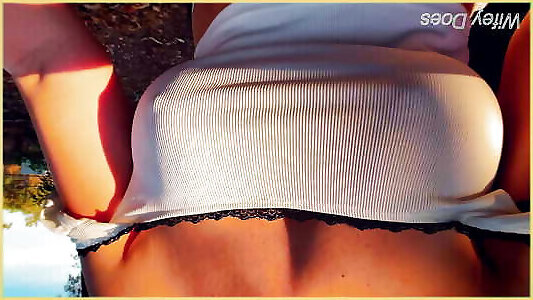 Wifey displaying breasts – public nudity in public park