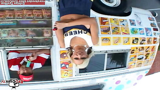 Diminutive platinum-blonde cheerleader nubile picked up for bang-out in a van