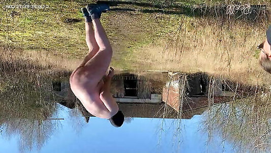 Outdoor teasing and tormenting with lovely sandy-haired sub