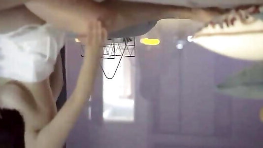 A Brunette Girl clara camfrog Huge Fake Breasts Got Her Feet Covered in Guys Cum