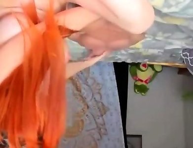 Hot sandy-haired with pubic hair nails ample fake penis on webcam