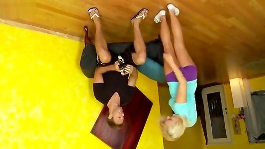Buxomy Brunettes Nubiles Stretching Together Revealing Cameltoes
