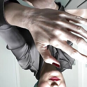 Latex Female Dom Mistress Throttles And Jacks Marionette With Mitt Strangle And Facesitting!