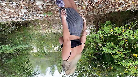 Huge-boobed Cougar almost caught while plumbing by the sea