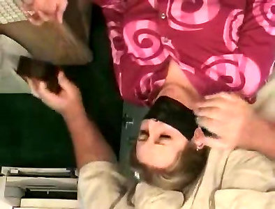 corded to the barber tabouret, she is frigged stiff in her latex suit