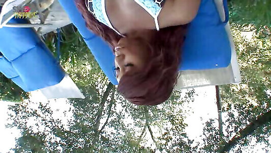 Chocolate MILF in a blue bikini gets fucked by a white dude