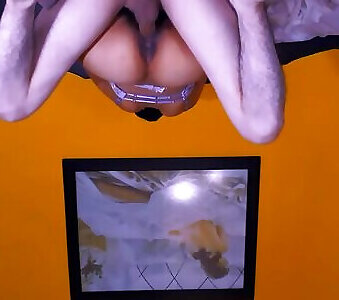 College teenager with gigantic fun bags glass assfucking fucktoy