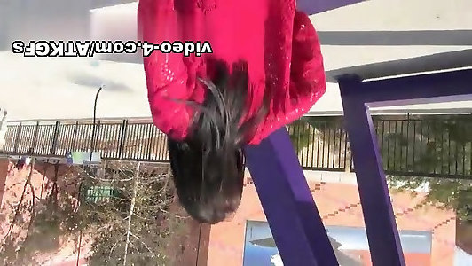 Blond Slut Lucy In Fishnets Ass-fuck Railing Hard Meatpipe