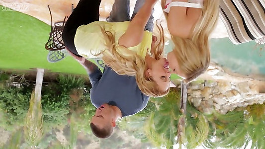 Bodacious suntanned nymphomaniacs ride cocks and get analfucked near the pool