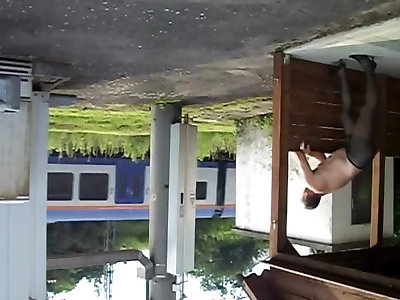 Railing A Ebony Fake Penis IN HIGH High-heeled Shoes AND Tights