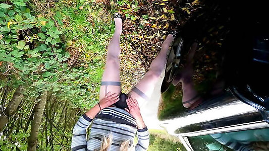 crossdresser kellycd2022 stroking outdoors camper ride down the lanes, ladyboy she-male sissy stocking high-heeled slippers