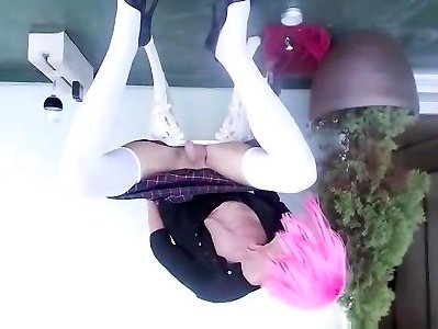 Jerk & Jizz in underwear outdoors in garden dressed in lollipop-string
