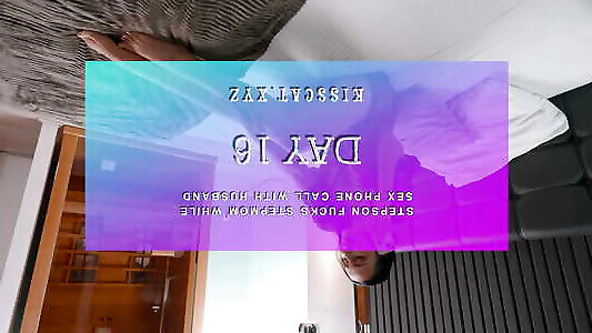 DAY 16 - Step son fucks Step mom while Sex Call with Husband - Pussy Licking, Cowgirl, Deepthroat
