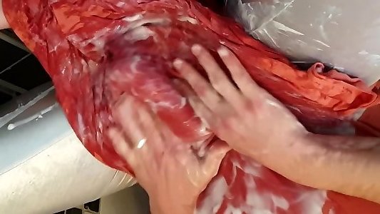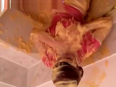 silver stretch pants and crimson sundress shower wam filthy with custard