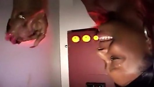 Dark skinned gloryhole fuckslut with massive fun bags feeds her fervor for wood