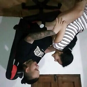 Fat girl fucking with the Skinny Boy big dick without protection in the hotel bathroom.