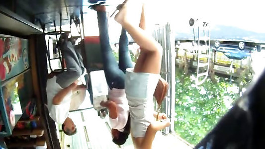 slow motion spy web cam under russian tramp in jeans miniskirt! disgrace on her !