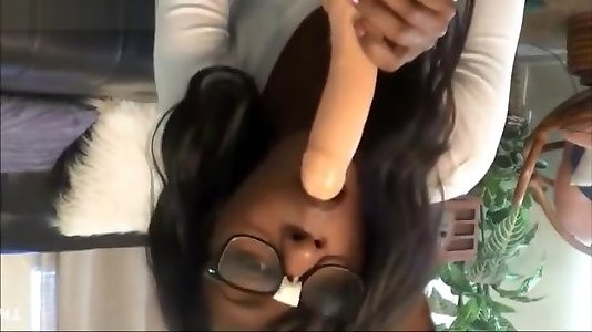 Pretty Dark-hued In Solo Act With Her Huge Fake Penis