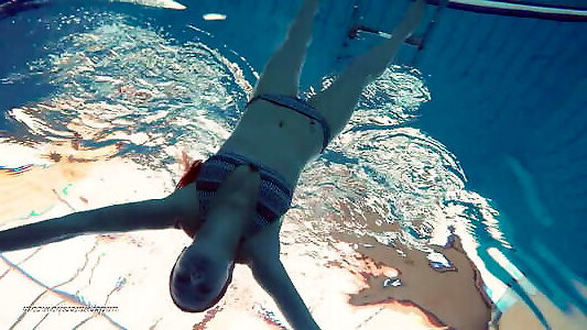 Massive boobs nubile Liza Bubarek swimming bare in the pool