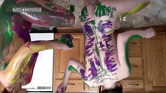 Tatted redheads Indigo and Lavender receive glamour with paint