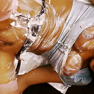 Pouring lashed splooge on her stomach and her meaty sugary-sweet lesbian bumpers
